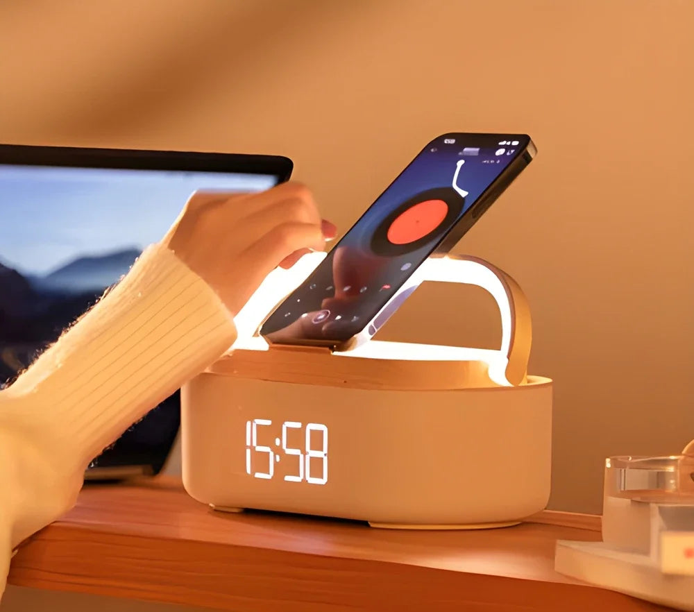 Una solució elegant tot en un per a la teva tauleta de nit o escriptori.