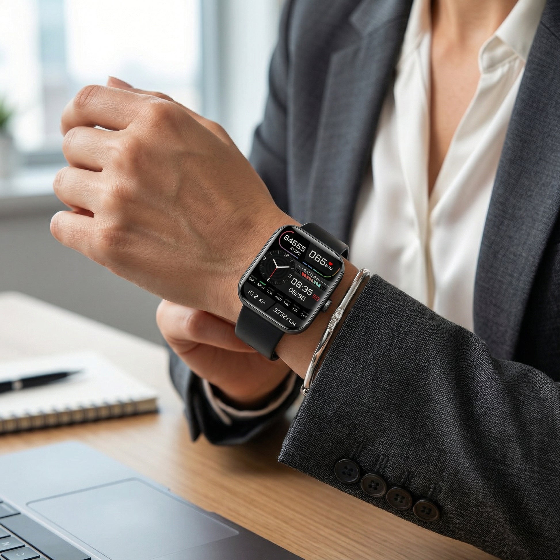 In addition, it tracks your heart rate, blood pressure, sleep quality, and oxygen saturation in real time. Ideal for diabetics and health-conscious people seeking a smart solution for daily monitoring.